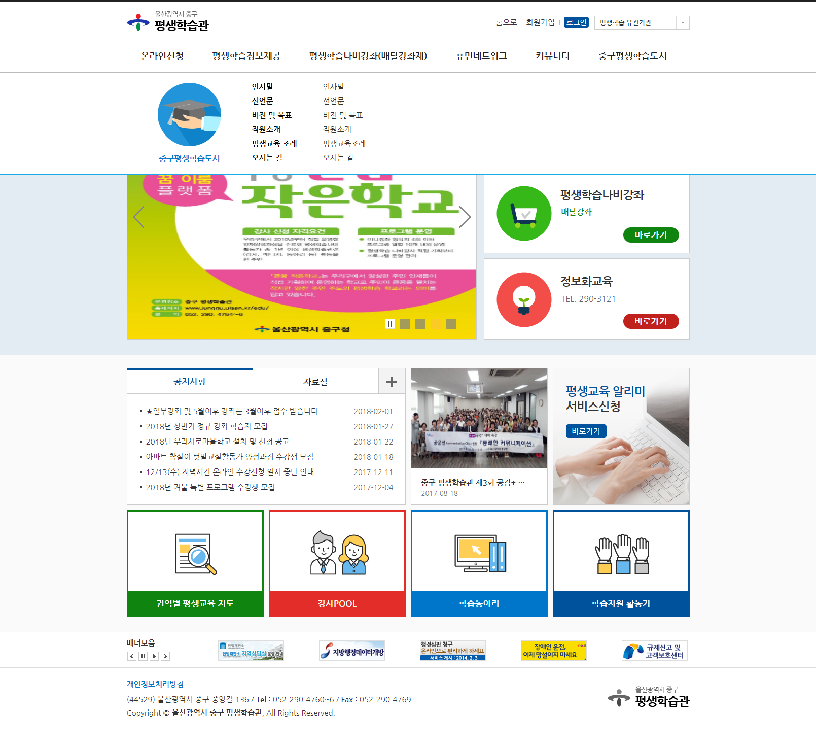 울산 중구평생학습관 홈페이지 개편